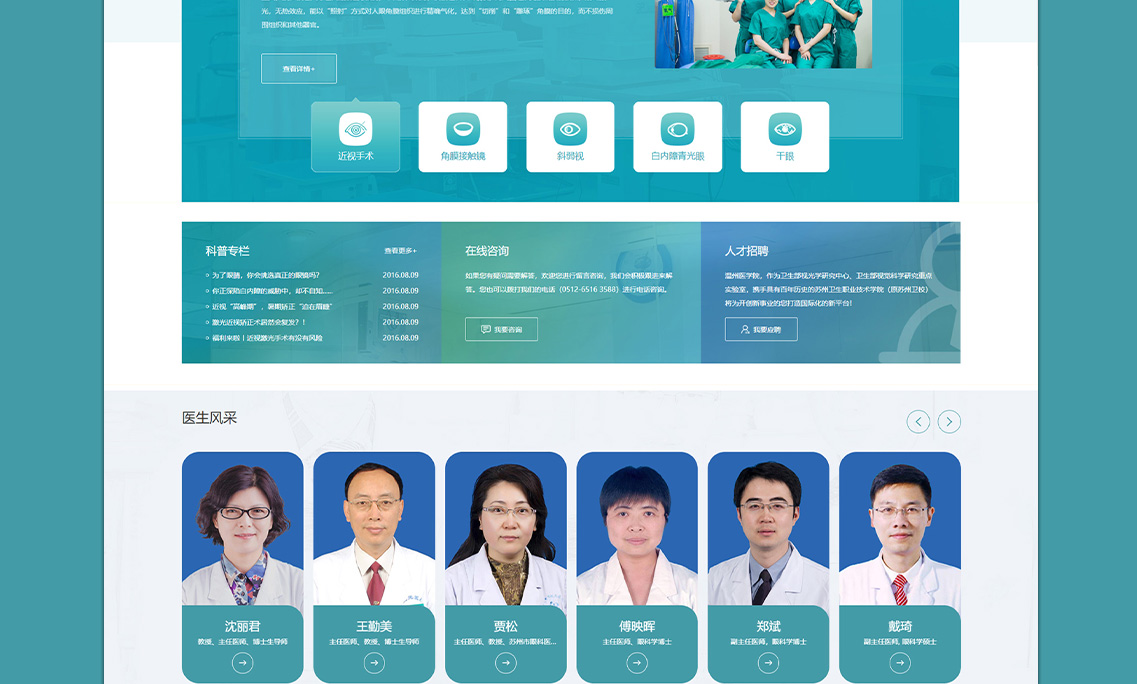 蘇州市眼視光醫(yī)院——暨蘇州市眼科醫(yī)院、溫州醫(yī)科大學附屬蘇州眼視光醫(yī)院、蘇州衛(wèi)生職業(yè)技術(shù)學院附屬眼科醫(yī)院、國家衛(wèi)生部視光學研究中心蘇州分中心,是江蘇省衛(wèi)生廳及蘇州市衛(wèi)生局批準創(chuàng)建的江蘇省首家眼視光??漆t(yī)院, 2006年8月被江蘇省勞動和社會保障廳批準為城鎮(zhèn)職工基本醫(yī)療保險定點醫(yī)療機構(gòu)。