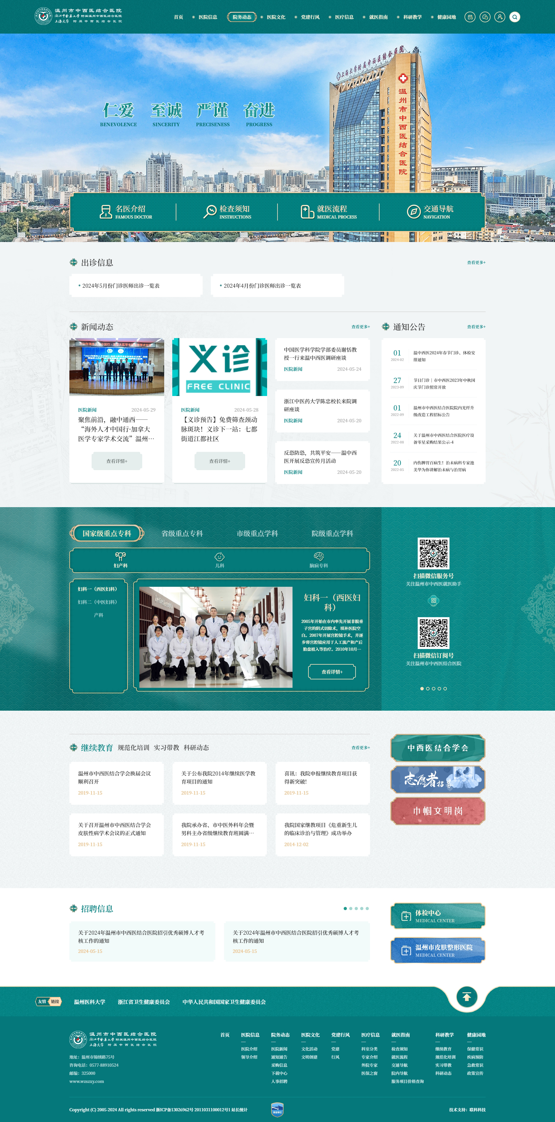 溫州市中西醫(yī)結(jié)合醫(yī)院(浙江中醫(yī)藥大學附屬溫州中西醫(yī)結(jié)合醫(yī)院、上海大學附屬中西醫(yī)結(jié)合醫(yī)院)成立于1958年,由溫州市區(qū)醫(yī)屆同仁攜手合作,組成溫州市中西醫(yī)結(jié)合醫(yī)院的前身溫州市聯(lián)合醫(yī)院,此后歷經(jīng)“溫州市康樂醫(yī)院”、“溫州市東風醫(yī)院”,于1987年更名為“溫州市中西醫(yī)結(jié)合醫(yī)院”。建院以來,醫(yī)院一直秉承“名醫(yī)立院”的宗旨,深得廣大市民信賴,如今已發(fā)展為集醫(yī)療、科研、教學、預防、保健、康復于一體的唯一一所市屬公立國家三級甲等中西醫(yī)結(jié)合醫(yī)院。近年來,先后獲得聯(lián)合國教科文組織“愛嬰醫(yī)院”稱號,全國中醫(yī)藥系統(tǒng)創(chuàng)先爭優(yōu)活動先