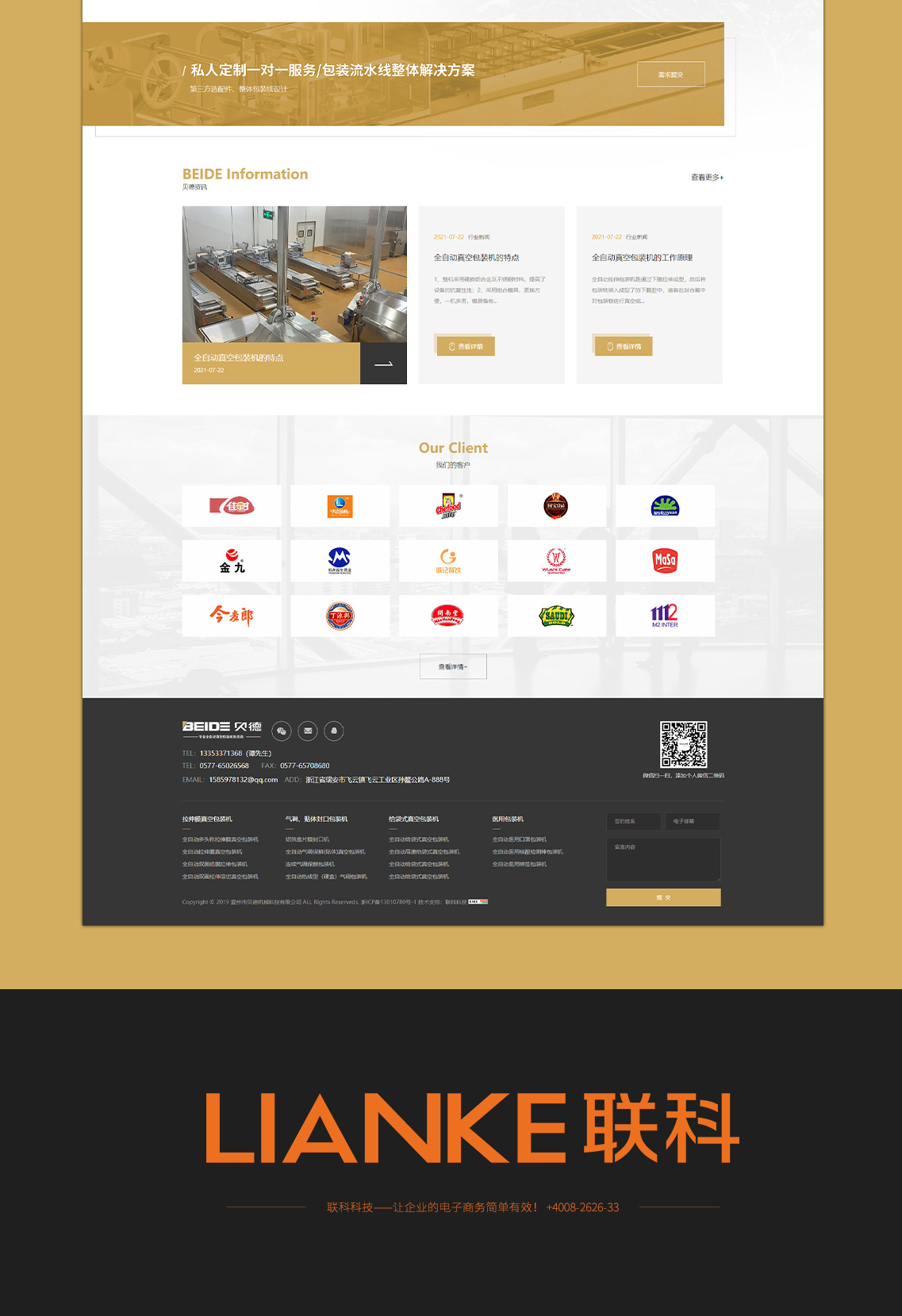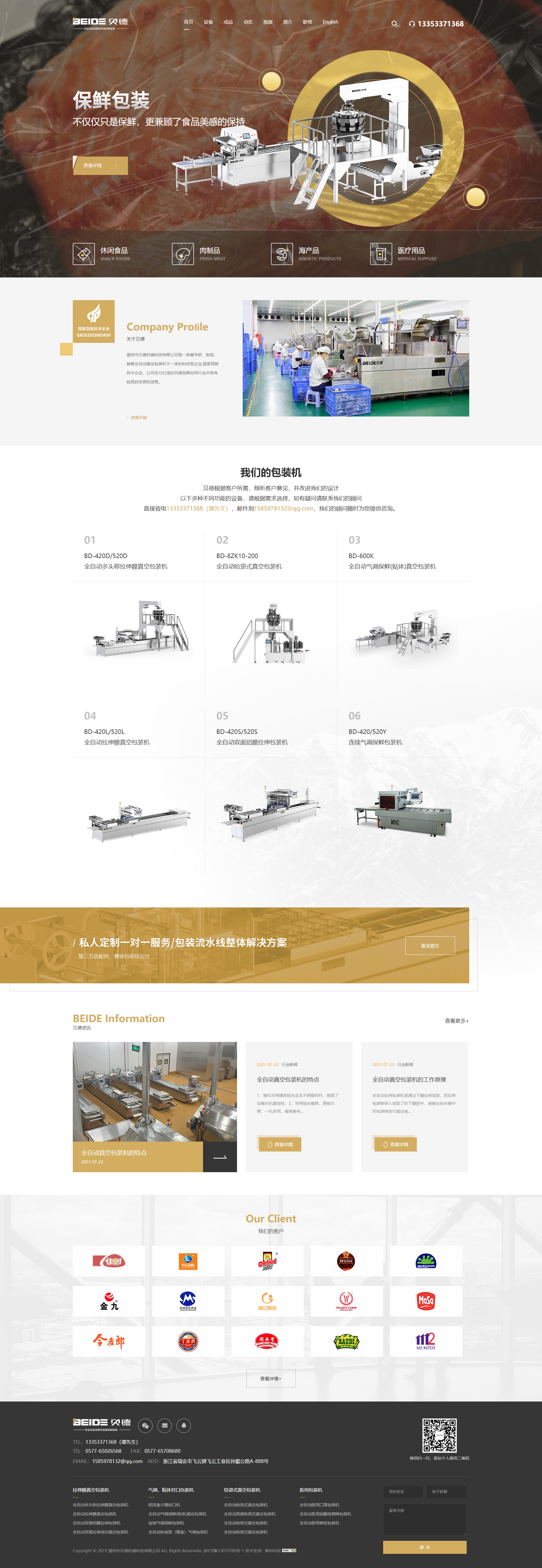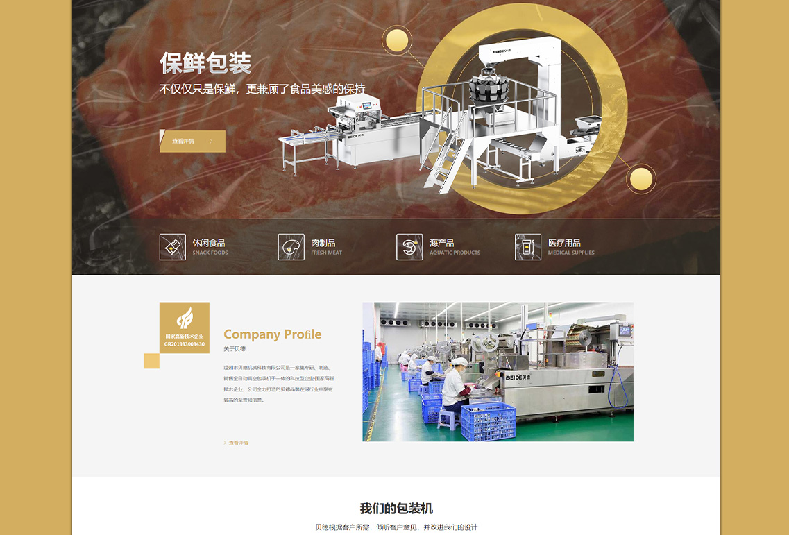 溫州市貝德機械科技有限公司是一家集專研、制造、銷售全自動真空包裝機于一體的科技型企業(yè)·國家高新技術企業(yè),公司全力打造的貝德品牌在同行業(yè)中享有較高的榮譽和信譽。