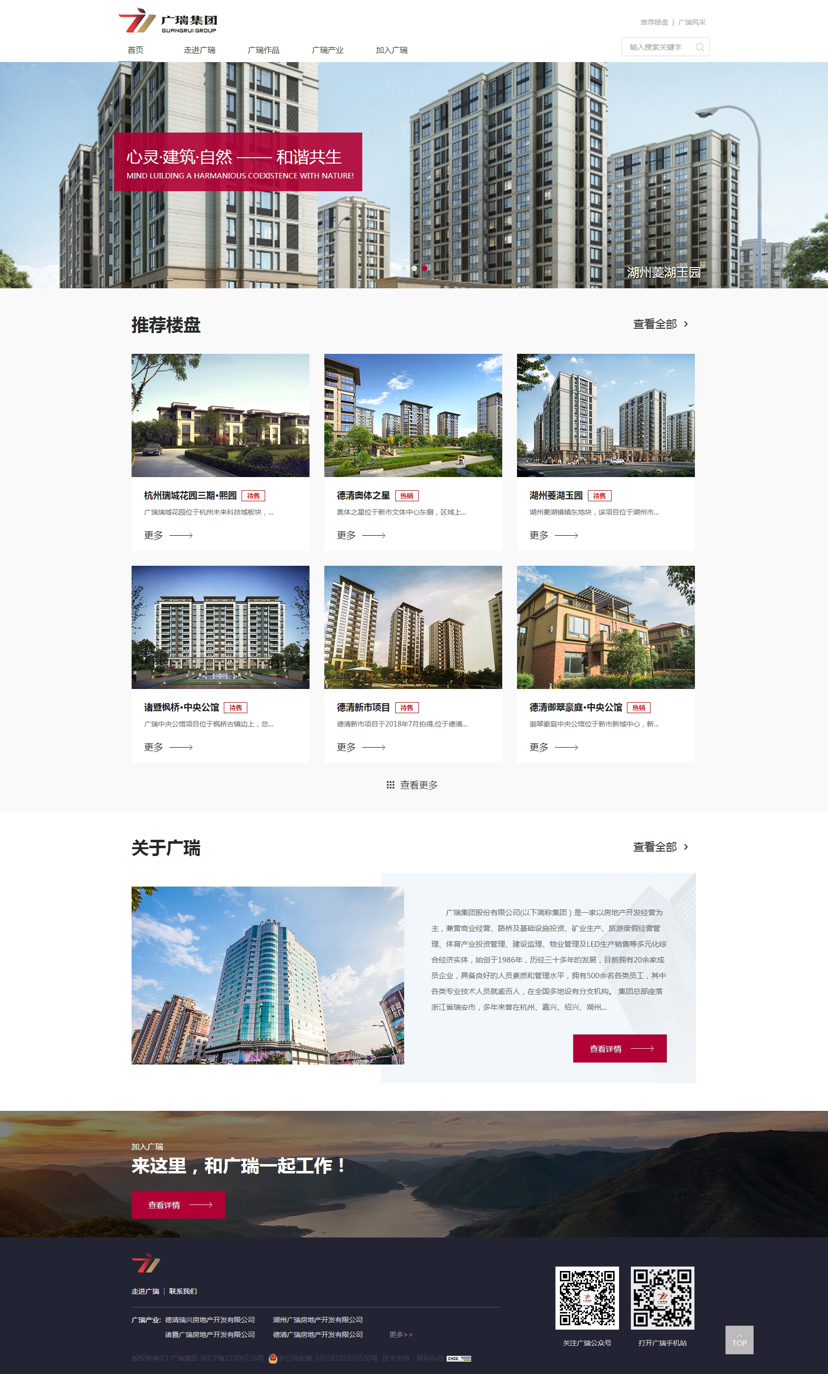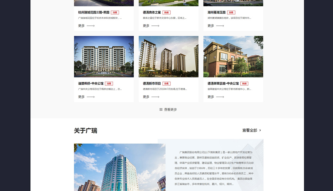 廣瑞集團股份有限公司(以下簡稱集團)是一家以房地產(chǎn)開發(fā)經(jīng)營為主,兼營商業(yè)經(jīng)營、路橋及基礎設施投資、礦業(yè)生產(chǎn)、旅游度假經(jīng)營管理、體育產(chǎn)業(yè)投資管理、建設監(jiān)理、物業(yè)管理及LED生產(chǎn)銷售等多元化綜合經(jīng)濟實體,始創(chuàng)于1986年,歷經(jīng)三十多年的發(fā)展,目前擁有20余家成員企業(yè),具備良好的人員素質(zhì)和管理水平,擁有500余名各類員工,其中各類專業(yè)技術人員就逾百人,在全國多地設有分支機構(gòu)。 集團總部座落浙江省瑞安市,多年來曾在杭州、嘉興、紹興、湖州、上海、桂林、呼和浩特、昆明、遼寧阜新、貴州黔西南州、澳大利亞墨爾本等地設立分支機構(gòu),并在當?shù)剡M行開發(fā)、經(jīng)營、生產(chǎn)、管理。