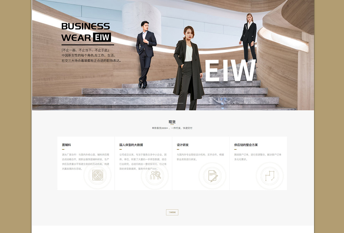 意威服飾于2014年3月25號(hào)成立,多年來(lái),堅(jiān)持服務(wù)同行,服務(wù)品牌商,渠道商,已成為國(guó)內(nèi)知名的現(xiàn)貨職業(yè)裝一站式供應(yīng)鏈平臺(tái)。