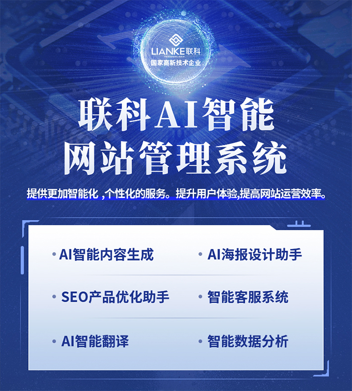 在當今數(shù)字化浪潮下,企業(yè)面臨著前所未有的挑戰(zhàn)與機遇。如何在激烈的市場競爭中脫穎而出,不僅取決于產(chǎn)品和服務(wù)的質(zhì)量,更在于如何高效、智能地管理和優(yōu)化企業(yè)的線上門戶。聯(lián)科AI智能網(wǎng)站管理系統(tǒng),正是一款為現(xiàn)代企業(yè)量身打造的工具,它以人工智能為核心,旨在提供更加智能化、個性化的服務(wù),提升用戶體驗,提高網(wǎng)站運營效率。