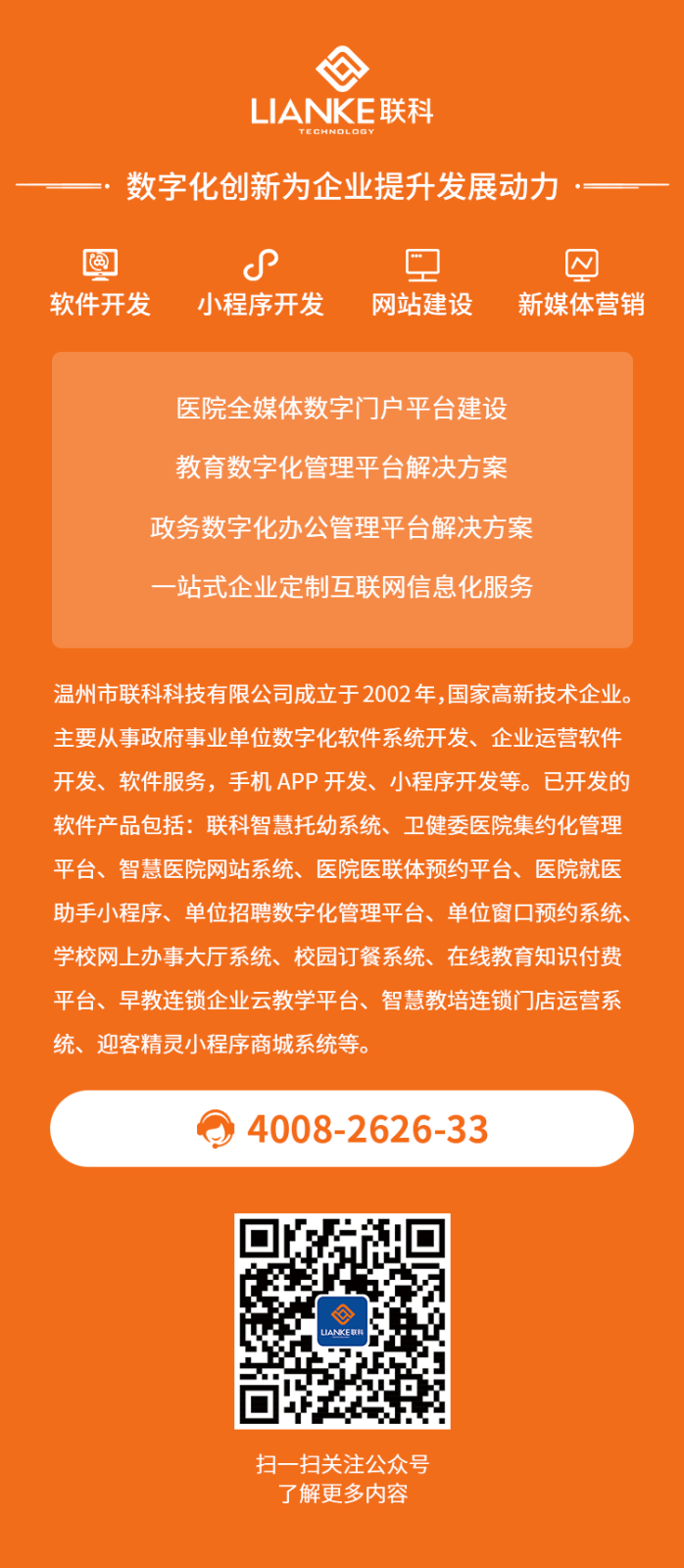 聯(lián)科科技23年專注于全媒體數(shù)字門戶系統(tǒng)、門戶網(wǎng)站內(nèi)容管理平臺(tái)、集約化醫(yī)院站群管理系統(tǒng)開(kāi)發(fā)、