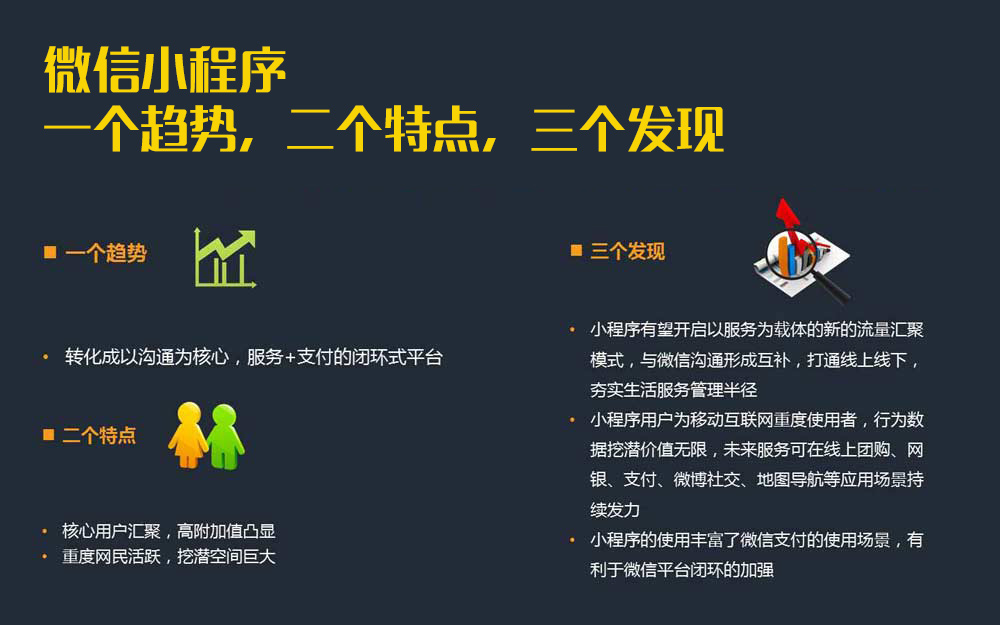 騰訊官方是這樣說的:微信之所以推出小程序,并非想要做應(yīng)用分發(fā)市場,而是給一些優(yōu)質(zhì)服務(wù)商提供一個(gè)開放的平臺(tái)。
