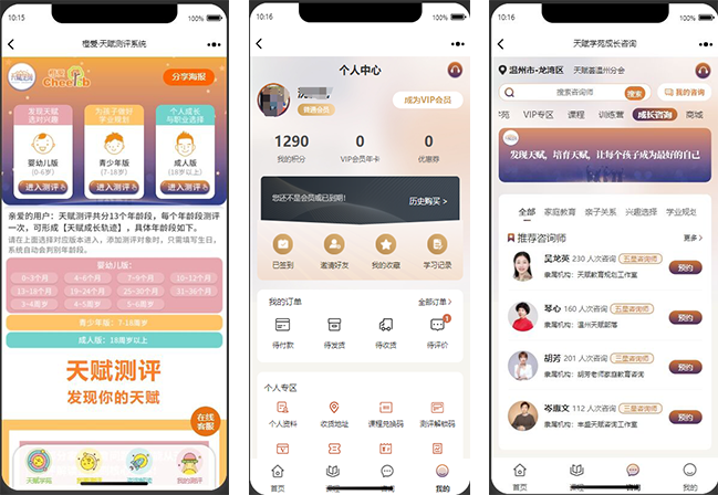 天賦測(cè)評(píng)系統(tǒng)用到的八大智能數(shù)據(jù)、測(cè)評(píng)試卷、測(cè)評(píng)題目、測(cè)評(píng)結(jié)果數(shù)據(jù)、測(cè)評(píng)報(bào)告數(shù)據(jù)、測(cè)評(píng)報(bào)告訂單、訪問日志、報(bào)告解鎖碼和預(yù)約用戶等內(nèi)容進(jìn)行管理。系統(tǒng)支持多用戶多年齡段的測(cè)評(píng),根據(jù)用戶端測(cè)試結(jié)果進(jìn)行數(shù)據(jù)處理,從而形成測(cè)評(píng)對(duì)象的專業(yè)測(cè)評(píng)報(bào)告,傳輸給前端用戶查閱。