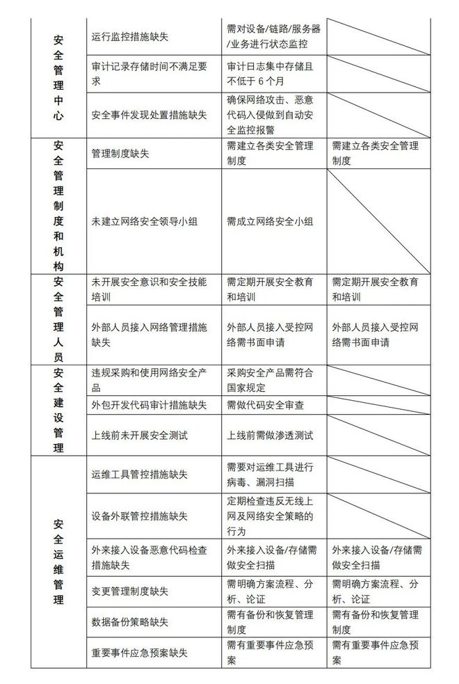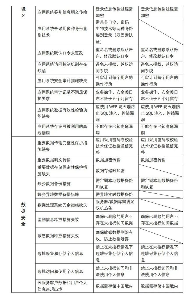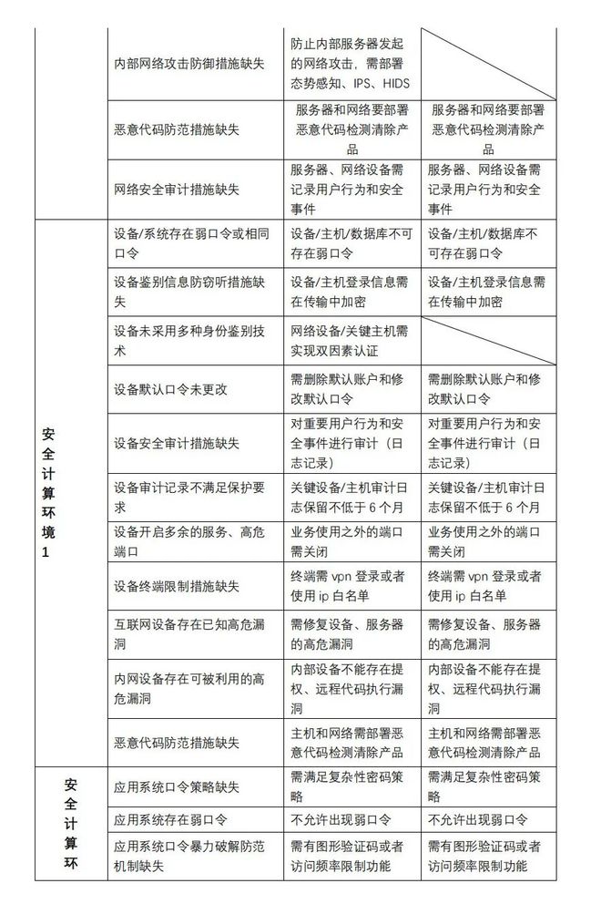 本文參考了《T/ISEAA 001-2020 網(wǎng)絡(luò)安全等級(jí)保護(hù)測(cè)評(píng)高風(fēng)險(xiǎn)判定指引》,整理出了等保三級(jí)、二級(jí)所需產(chǎn)品和要求。研發(fā)或運(yùn)維人員通過該表可直觀了解自己的系統(tǒng)與等保要求存在的差距,并做出相應(yīng)整改。