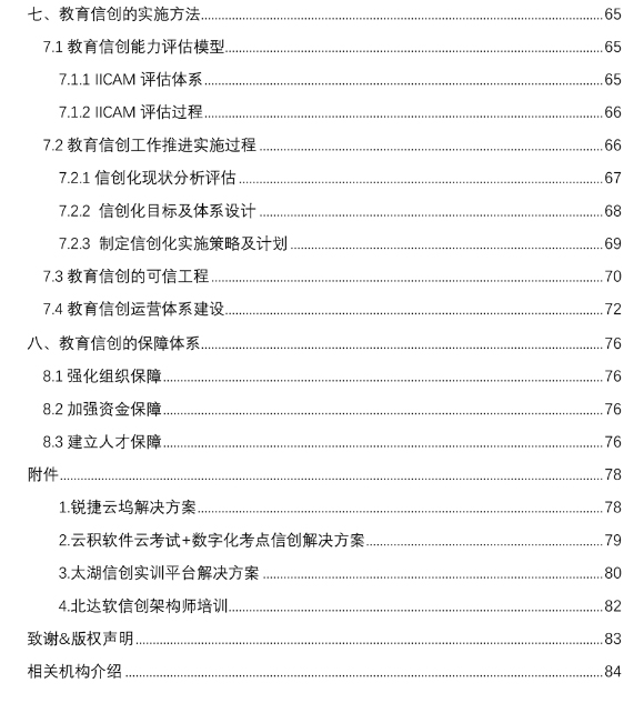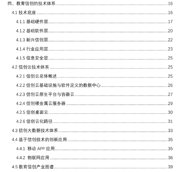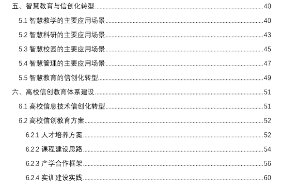 《白皮書》共分為八大章節(jié):教育信創(chuàng)的背景、教育信創(chuàng)的目標(biāo)與指導(dǎo)原則、智慧教育的架構(gòu)框架、教育信創(chuàng)的技術(shù)體系、智慧教育與信創(chuàng)化轉(zhuǎn)型、高校信創(chuàng)體系建設(shè)、教育信創(chuàng)的實(shí)施方法及教育信創(chuàng)的保障體系。